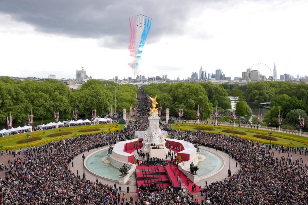 VICTORY IN HEAVEN: Britain Celebrates 80 Years of Liberation as Royalty Watches in Awe As the sun shone brightly over the iconic Buckingham Palace, the air was electric with excitement and nostalgia. Yesterday, the United Kingdom commemorated a pivotal moment in its history – the 80th anniversary of VE Day, marking the Allied victory over Nazi Germany that brought an end to World War II. The royals, joined by crowds of jubilant Britons, gathered on the palace balcony to witness a spectacular flypast that will be etched in the nation’s memory forever. In this special report, we take you back in time to relive the triumph of the British people, as the Union flag waves high once more in celebration of freedom, unity, and the unwavering spirit of the British nation.