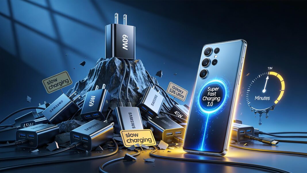 The morning light catches your Galaxy S26 Ultra’s charging cable just right, casting shadows that almost hide the tiny betrayal happening inside your sleek new device. Samsung’s latest flagship sits proudly on your desk, promising cutting-edge everything—except, it turns out, the one thing you thought you were getting when you splurged on that 65W Trio charger. The numbers don’t add up: 65W minus 5W equals a whole lot of frustrated early adopters who woke up to discover their premium purchase has been quietly kneecapped.
